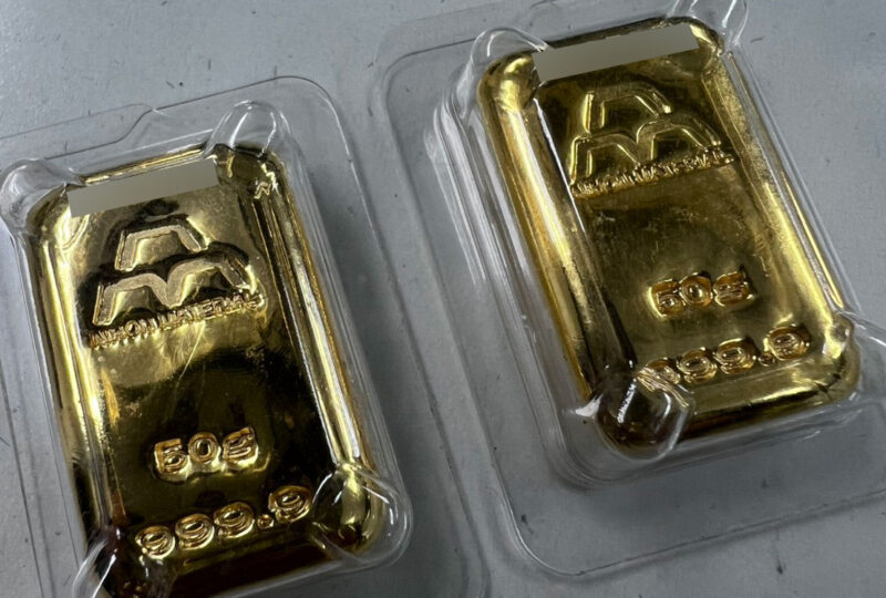 純金インゴット50gを2本、お買取しました