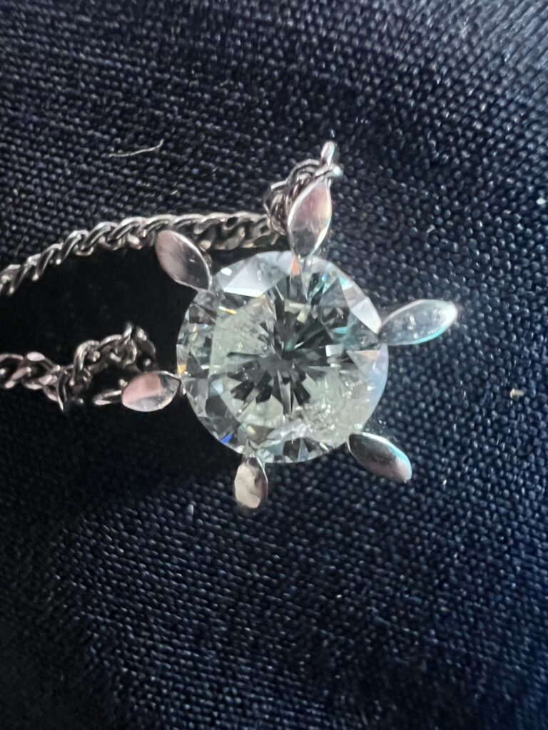 - スペック:トップPt900 1.5g+チェーンPt850 2.5g/ダイヤ 約1.0〜1.2ct(J〜K, SI2)