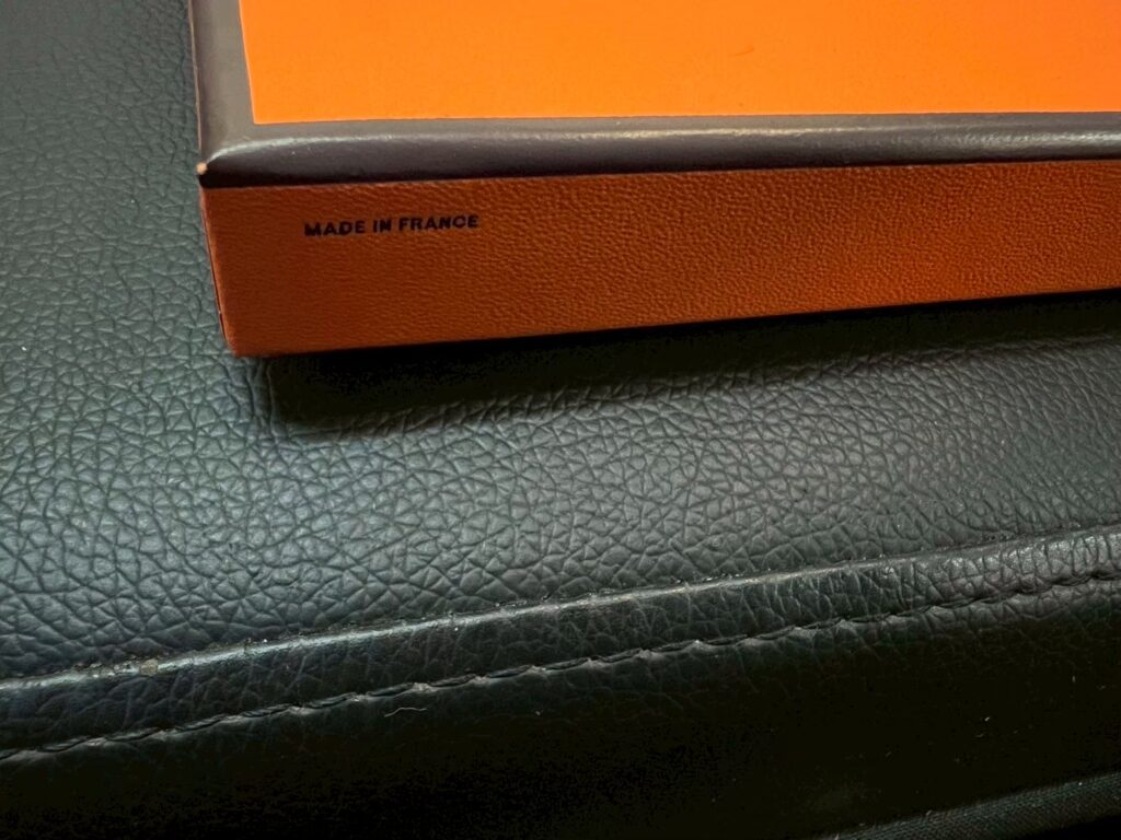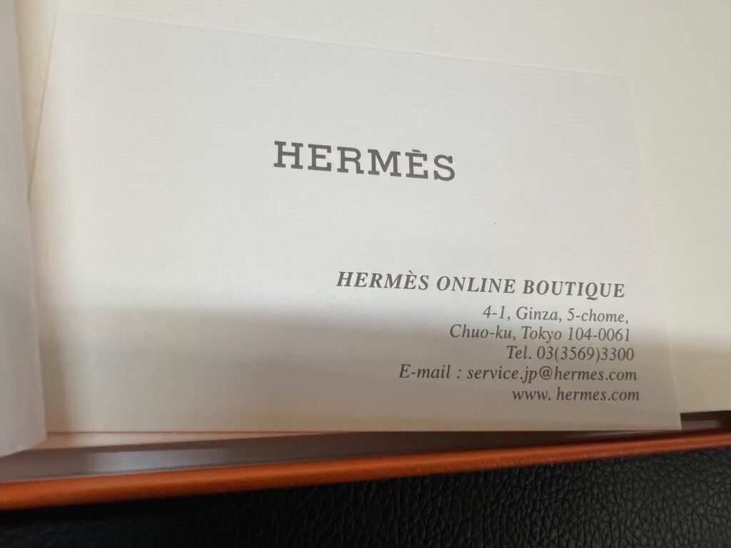 - 付属品:オレンジボックス(側面“MADE IN FRANCE”印字)、オンラインブティック案内カード、封筒