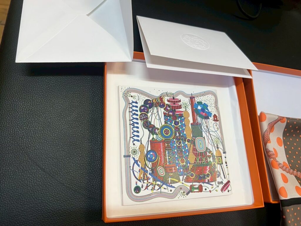 付属は**オレンジボックス(MADE IN FRANCE表記)**とエンボス封筒入りのカード。ギフト用途にも映える完備状態で、コレクションとしてもおすすめの一枚です。