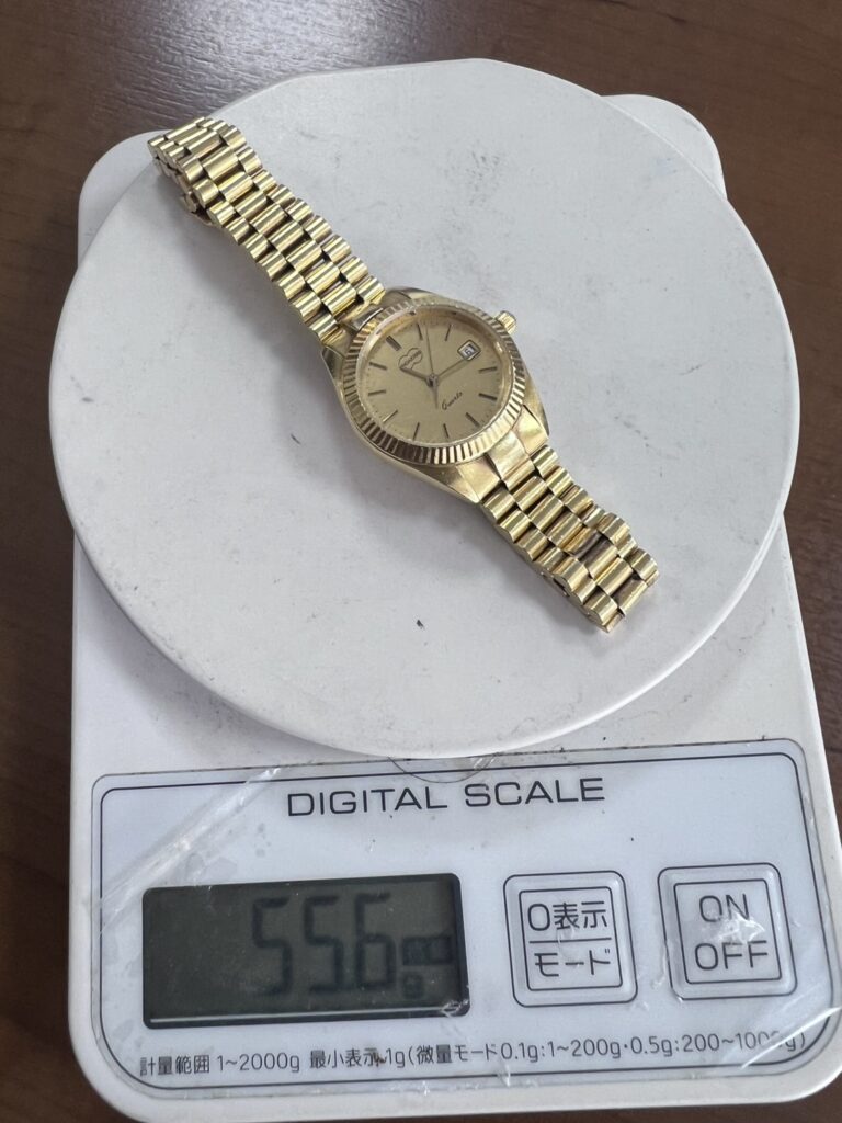 金無垢時計は非金属控除後の金量×当日相場が基本の評価軸です。